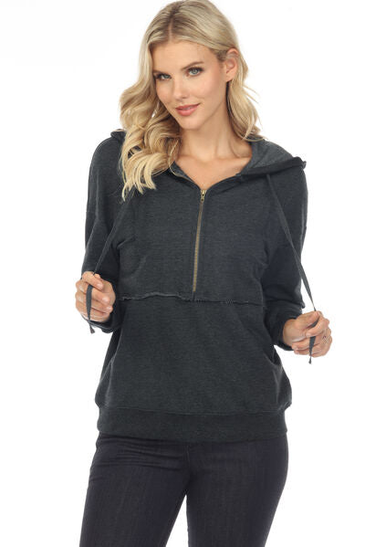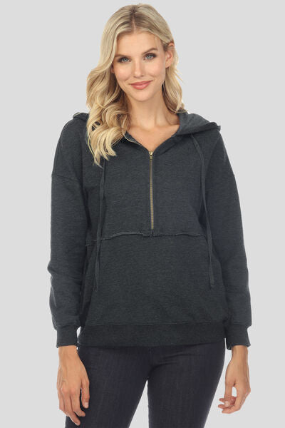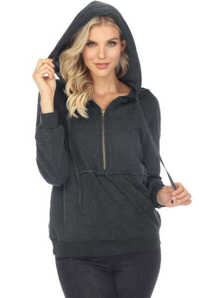 Drawstring Half Zip Dropped Shoulder Hoodie