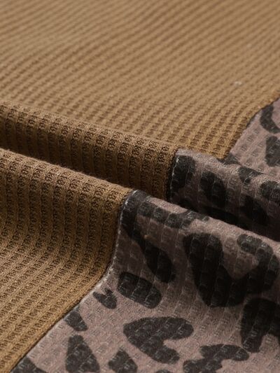 Half Button Leopard Collared Neck Blouse