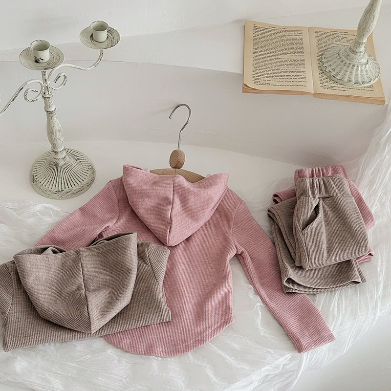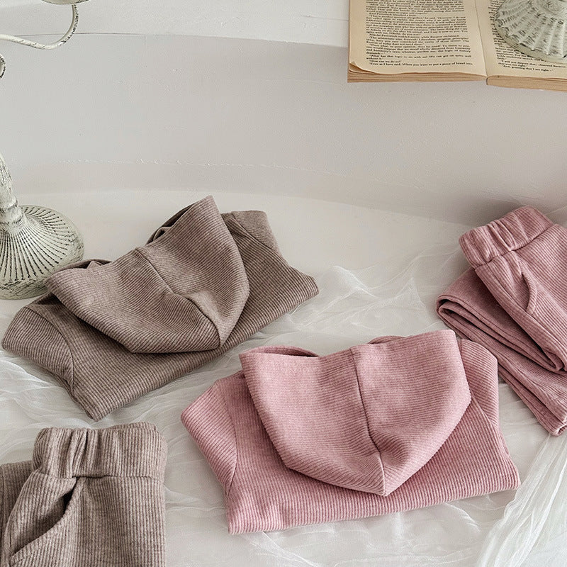 This two-piece set is a playful and comfy choice for kids. Featuring a hood, two-button front, and side pockets, it offers both style and practicality. Long sleeves and an elastic waistband ensure a snug fit, while the flared bottoms add a fun, breezy touch. Perfect for active days and endless adventures. Time to brighten their wardrobe!
