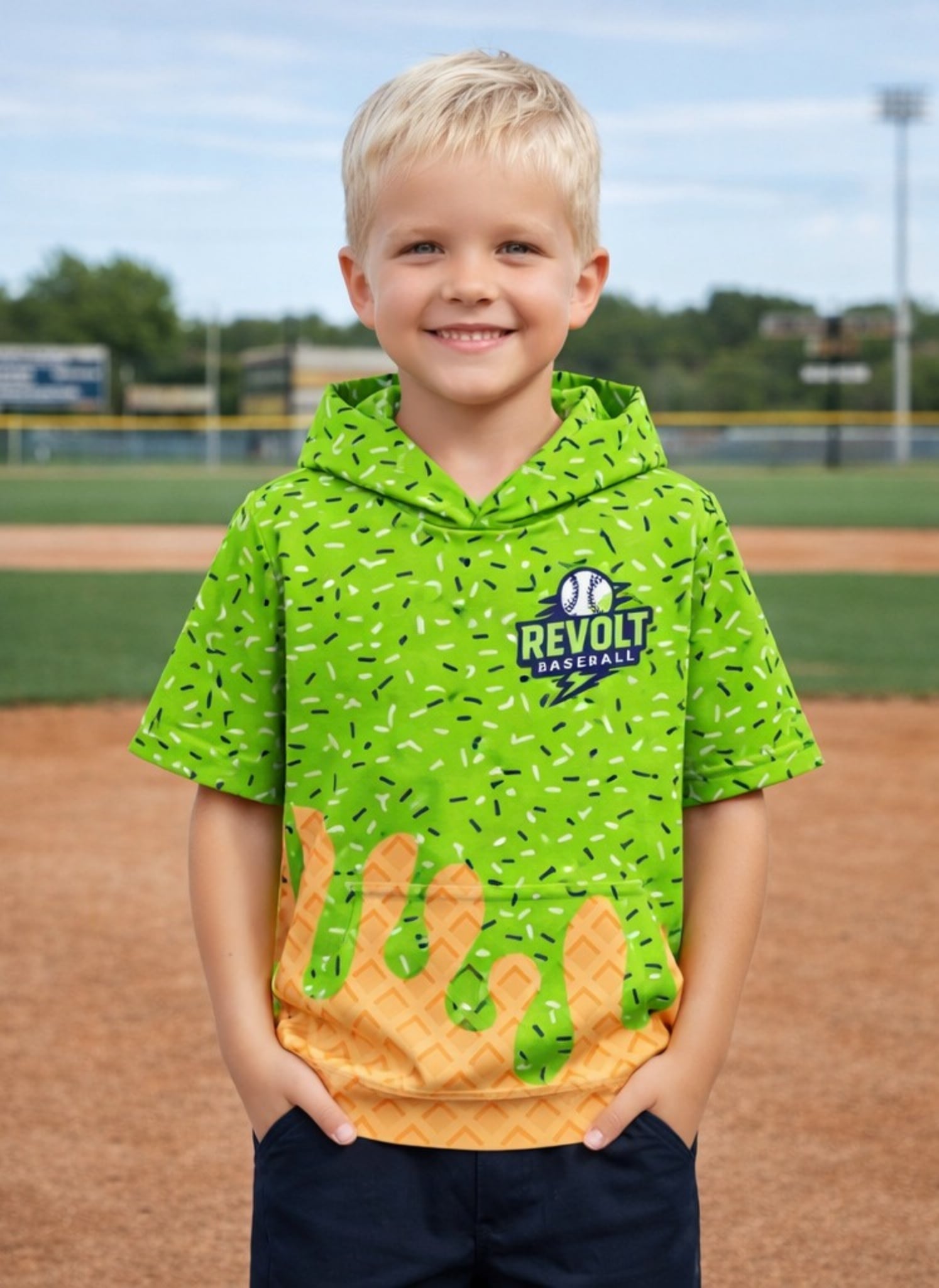The hoodie tee that's about to be everyone's favorite! Our Custom Hooded Drop Tees combine the comfort of a lightweight hoodie with a fun ice-cream drip design that can be completely customized! These are perfect for teams, schools, businesses, events or just a fun custom look!