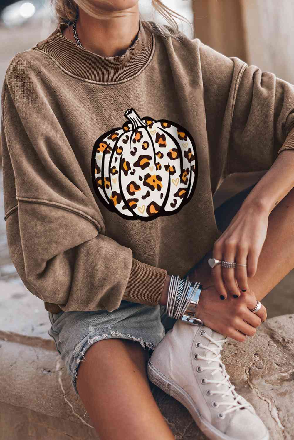 Round Neck Dropped Shoulder Pumpkin Graphic Sweatshirt