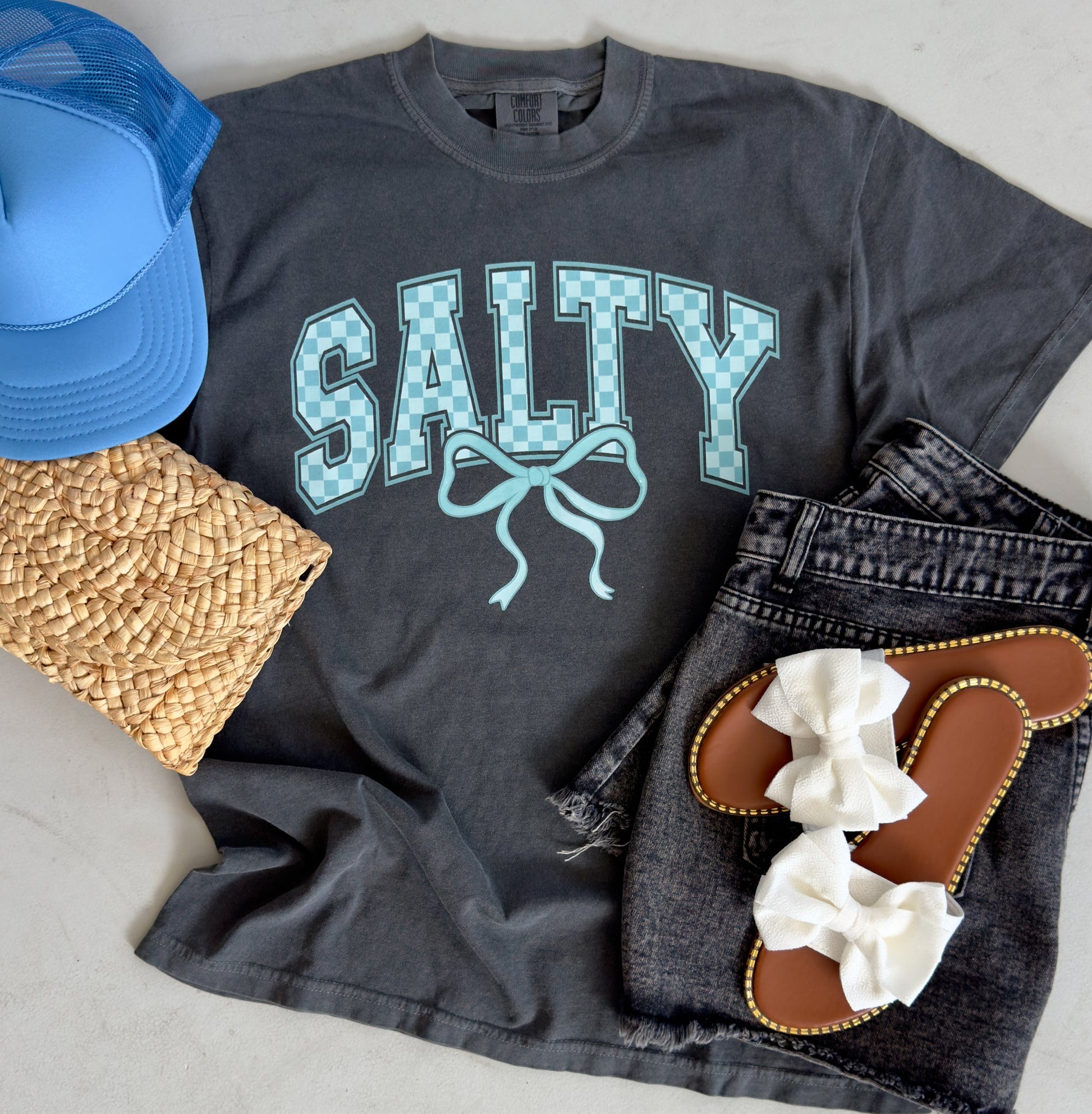 This “Salty” design blends bold lettering with soft details. Great for beach days or simply channeling that carefree energy.