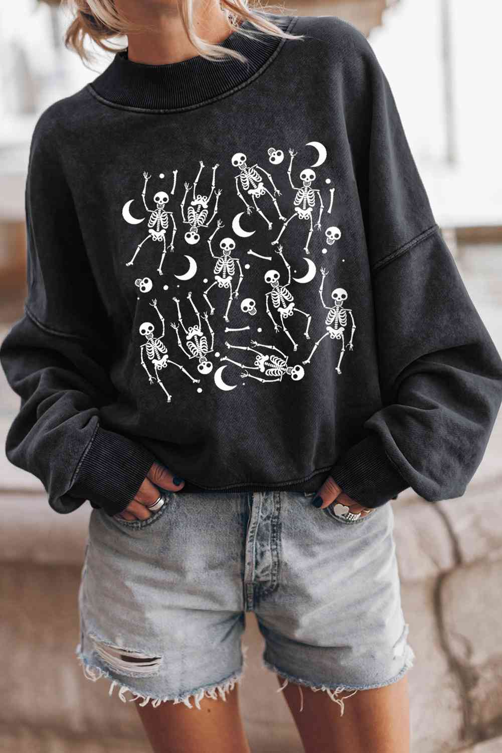 Skeleton Graphic Round Neck Long Sleeve Sweatshirt
