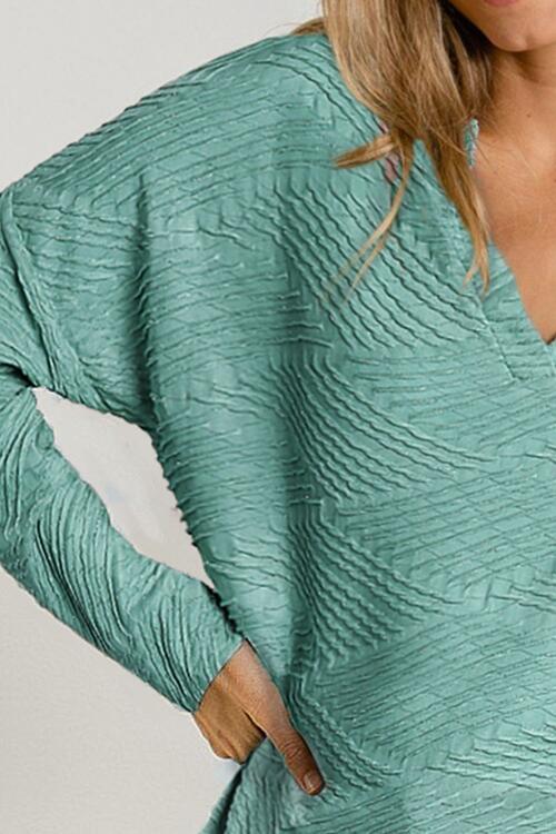 Texture Notched Drop Shoulder Top