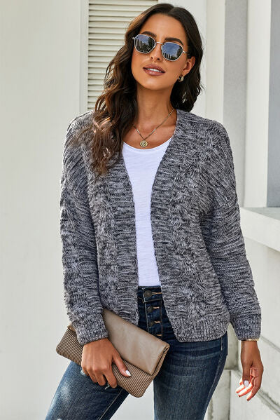 Waffle-Knit Open Front Dropped Shoulder Sweater